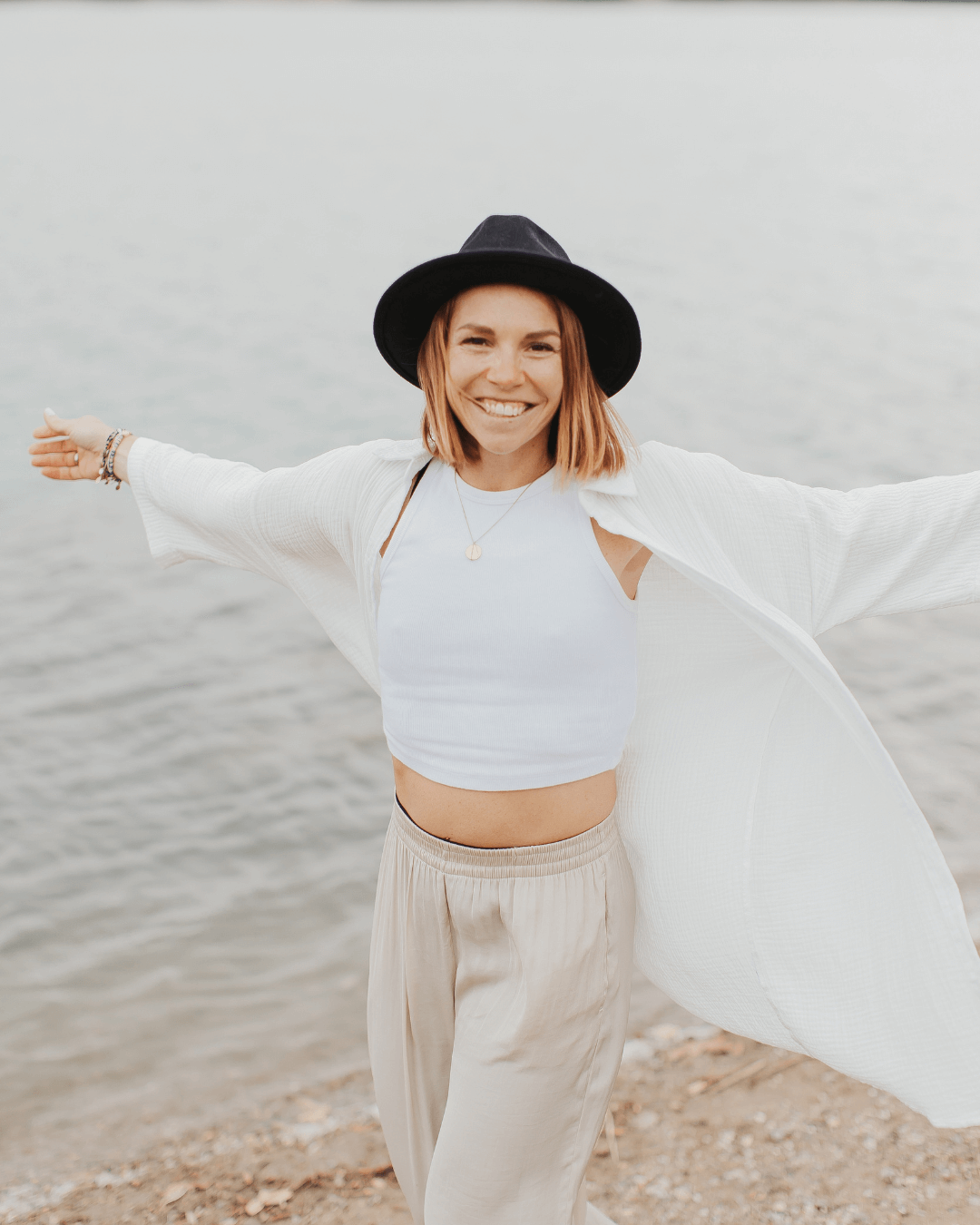 Wenn ich nicht gerade Zeit mit meinen Kids verbringe, selbst trainiere oder auf meiner Yogamatte sitze, begleite ich Frauen wie dich zurück in ihre Kraft – körperlich, emotional und energetisch.
